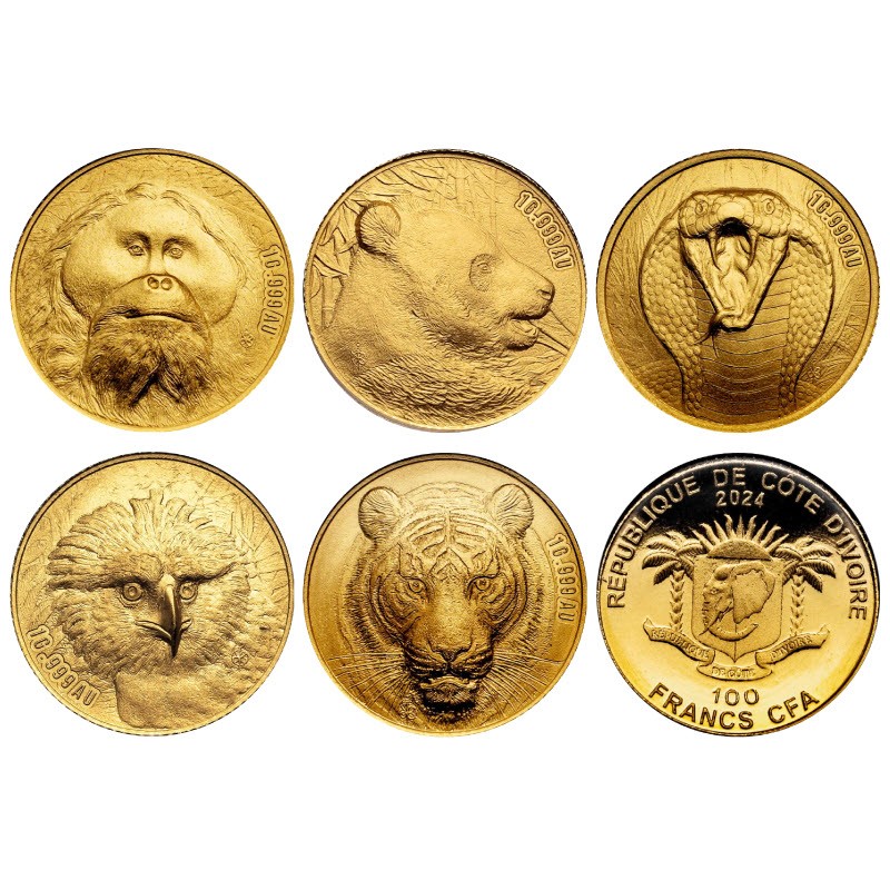 Republic of Côte d'Ivoire: gold coins Animals Asia 2024 set 5 g