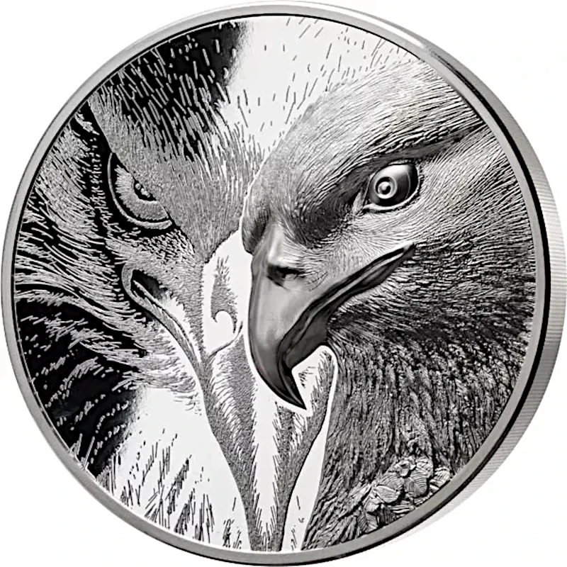 This impressive half-kilogram silver coin was created using revolutionary Enhanced Smartminting® technology, delivering extremely high relief on both sides. The coin features a striking three-dimensional interpretation of an eagle. On the reverse, the bird is shown frontally and in profile with remarkable depth, while on the obverse the talons dramatically rise above the surface. Struck in Proof quality, the coin displays exceptional brilliance, highlighting the finest details, from the structure of the feathers to the predator’s sharp beak. The coin is presented in a case and accompanied by a certificate of authenticity. The mintage is limited to 500 pieces.