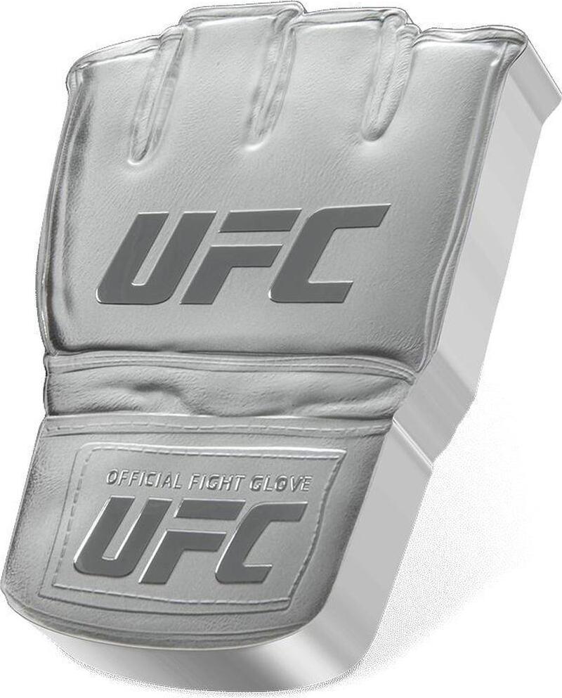 This impressive 3 oz silver coin is designed in the shape of the iconic UFC glove, a symbol of strength, history and the continued evolution of the sport of fighting. The coin is minted as Proof and features a mirrored UFC® logo on a matte textured background. The unique design and limited mintage of 1,000 pieces make it a coveted collector's item. Each piece comes in a stylish branded package with a certificate of authenticity and an individual number. The coin has the status of legal tender and an official UFC license.