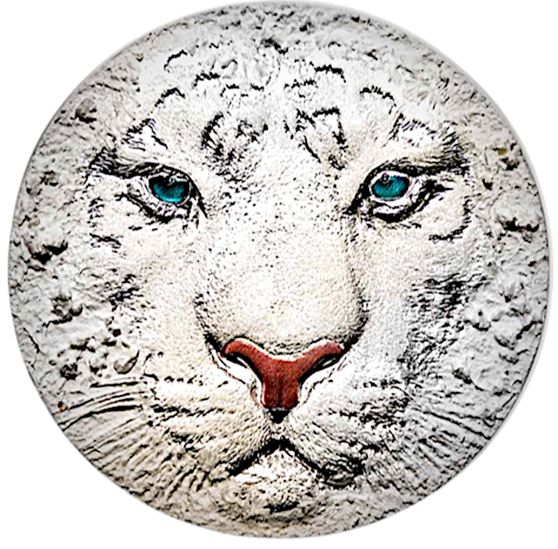 This impressive 3 oz silver coin marks the launch of the White Hunters series and is dedicated to the white tiger. The coin features striking high relief, an antique finish, and an innovative Ice/Snow effect that creates the illusion of ice crystals across the surface. The reverse depicts a white tiger with expressive blue eyes and a pink nose, capturing the beauty and power of this rare predator. The coin is presented in an elegant case and accompanied by a certificate of authenticity. The mintage is limited to 369 pieces worldwide.