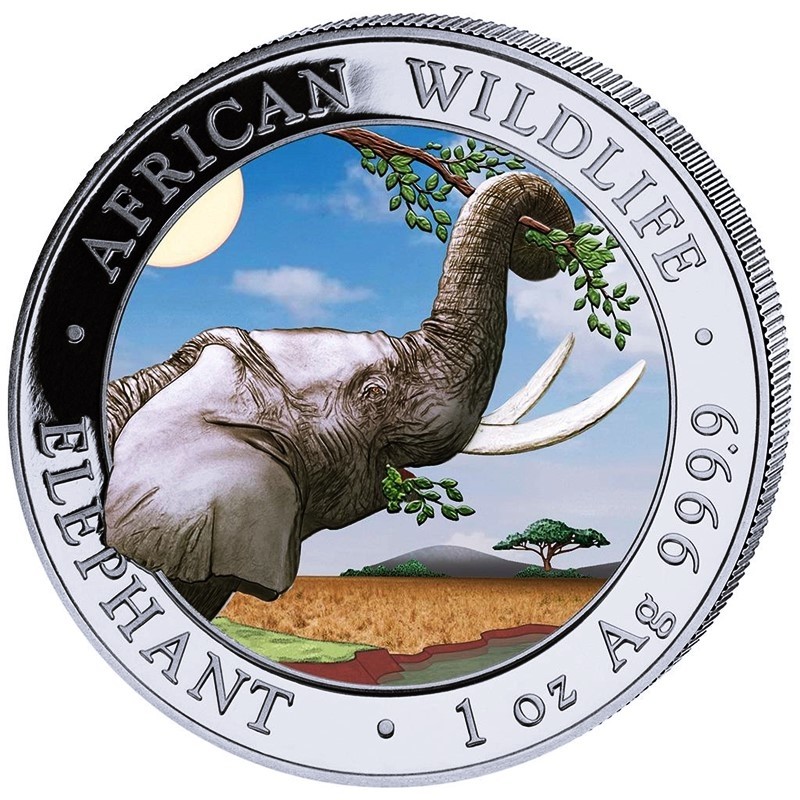 Somalia Silver Coin African Wildlife Elephant 2023 Colored Day Design 1 oz of Pure Silver 0,9999